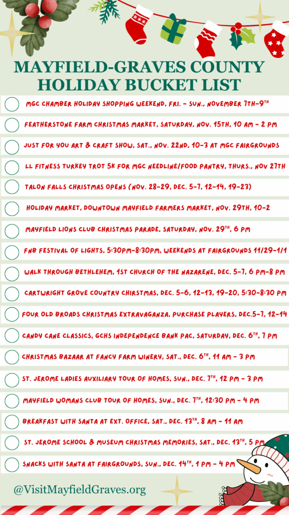 Take a tour of our website and then come to Mayfield and Graves County and see it for yourself! We can’t wait to welcome you in person!