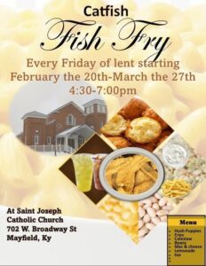 Join us at St. Joseph Catholic Church every Friday in lent for their traditional Fish Fry!