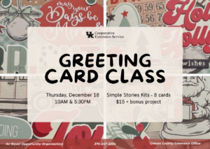 December Greeting Card Class is this Thursday, 10 AM or 5:30 PM!!!We’re all wrapped up in Simple Stories Kits 8 cards with additional ribbon, embellishments, stamped images, envelopes + a bonus project!$15 at the door!