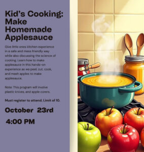 Give little ones kitchen experience in a safe and mess friendly way while also discussing the science of cooking. Learn how to make applesauce in this hands-on experience as we peel, cut, cook, and mash apples to make applesauce.