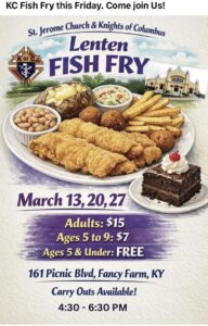 Join us at the KC Hall in Fancy Farm for the St. Jerome Fish Fry!