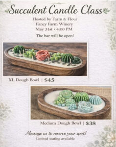 Join Farm & Flour at the Fancy Farm Winery for a fun afternoon of building your own succulent candle!