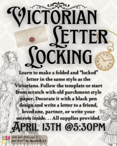 Join us at the Graves County Public Library to learn a simple but gorgeous craft; Victorian Letter Locking!