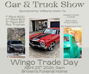 Make your plans to be part of the car show during Wingo Trade Day!